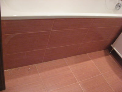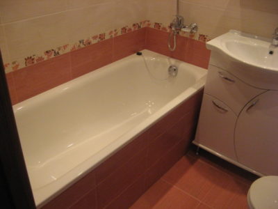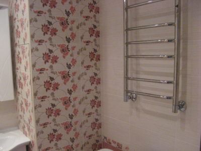 Наша компания выполнила капитальный ремонт санузла в квартире, расположенной на бульваре Кавказский. В результате демонтажных и ремонтно-отделочных работ помещение приобрело аккуратный современный вид. В комнате удалось компактно расположить полноразмерную ванну, двухстворчатый мойдодыр, стиральную машинку, унитаз и полотенцесушитель. Воздухогон облицован керамической плиткой с цветочным рисунком. На остальные поверхности уложена однотонная плитка. Потолок оформлен пластиковыми панелями, в которые вмонтированы точечные светильники. Для освещения зеркала используется небольшое бра. Общая смета составила 122800 руб. На черновые материалы ушло 30900 р.