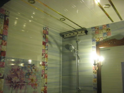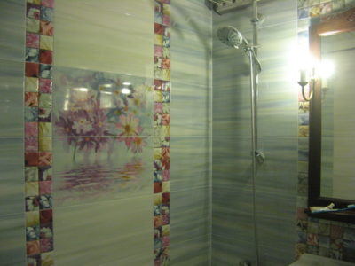 Главными достоинствами дизайна ремонта совмещенного санузла ванной на Сумском проезде стали белоснежные полы, тумба под рукомойник с темно-коричневыми фасадами и декорирование стен флористическими узорами. Изысканности интерьеру придают мозаика вдоль поверхностей и боковые светильники, выполненные в старинном стиле. В небольшом помещении мы установили новую ванну с гибким душем, умывальник со шкафчиком, унитаз, полотенцесушитель и сушилку для белья. Смета на ремонт составила 98 тысяч рублей. На закупку черновых материалов ушло 29 тыс. руб.