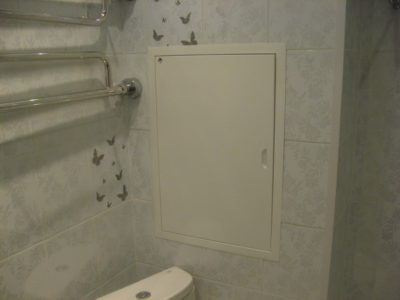 Наша компания выполнила комплексный ремонт санузла в хрущевке на улице Обручева. Для облицовки стен мы выбрали белую плитку с утонченным рисунком. В ходе проведения работ была уложена новая стяжка, смонтирован подвесной потолок и почищена система вентиляции. Вытяжное отверстие мы задекорировали решеткой. Коллектор водоснабжения разместили в боковом углу комнаты, закрыв ее распашной дверцей. В санузле установили рукомойник с тумбой, унитаз, электрический полотенцесушитель и ванну. Дополнительно смонтировали стеклянную полку и держатель для бумаги. Общая стоимость ремонта составила 98 тысяч рублей. Цена черновых материалов — 33000 р.
