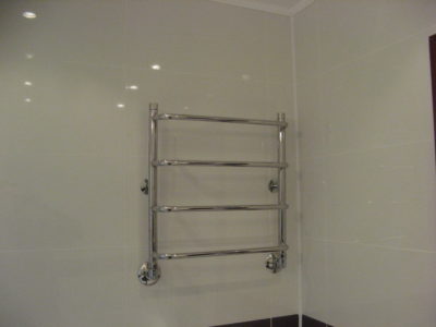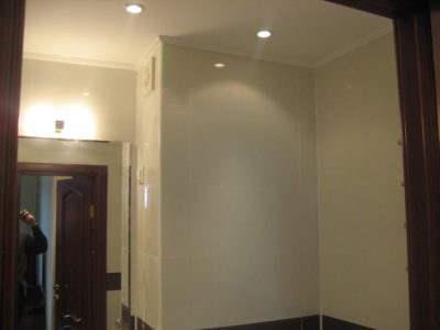 Мы выполнили ремонт совмещенного санузла на улице Коломенская по дизайн-проекту. Особенность помещения – нестандартная планировка с выступающим углом. Для комфорта жильцов мы перенесли унитаз на новое место и расположили его с правой стороны от входа, а перед ним установили стиральную машину. Центральное место комнаты перед входной дверью занимают умывальник с подвесной тумбой и большое зеркало. Вдоль глухой стены смонтирована ванна с функцией джакузи, а по бокам установлены полотенцесушитель и держатель для душа. При отделке стен использовался кафель молочного цвета. Придать интерьеру объема позволила контрастная фреза и фасады мойдодыра в темных тонах. Стоимость ремонта – 122000 рублей. Цена черновых материалов – 30 тыс. руб.