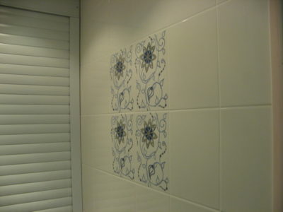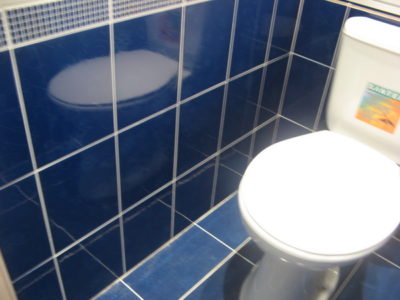 Наша компания выполнила ремонт туалета на ул. Лапина. Для декорирования поверхностей мы выбрали белый и синий кафель, а также светлые пластиковые панели для потолка. Коммуникации скрыли за защитными роллетами с возможностью доступа сантехников к инженерным сетям. На боковых стенах выложен узор из кафеля с нанесенным рисунком. Мы полностью заменили дверной блок и установили унитаз современной модели. Для освещения на потолке смонтированы точечные светильники. Общий бюджет ремонта составил 34000 руб. Стоимость черновых материалов — 10000 руб.