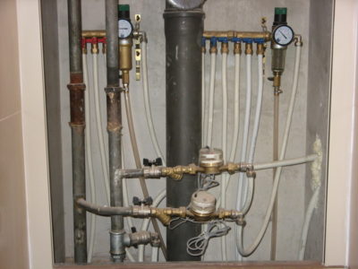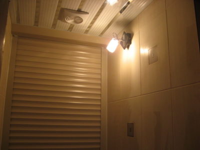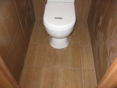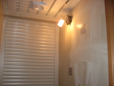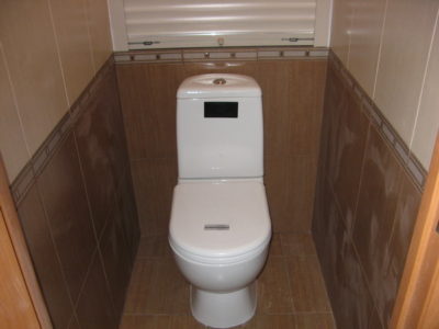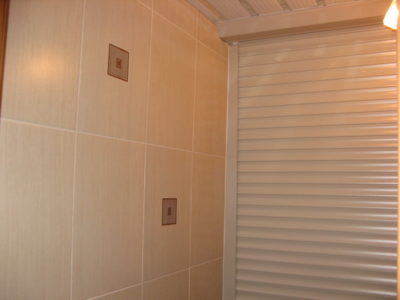 Наша компания выполнила капитальный ремонт туалета в квартире дома, находящегося на ул. Поречная. После проведения демонтажных работ все поверхности были выровнены и оформлены в светлых кремово-коричневых тонах. Для придания интерьеру нарядности между панелями на потолке уложена декоративная лента золотого цвета. Инженерные коммуникации, включая гребенку отопления, скрыты за защитным экраном. Мы также установили установили боковой светильник на стену. Цена черновых материалов — 7100 р. Общая стоимость — 26300 руб.