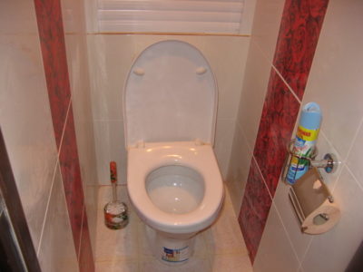 Наша компания выполнила ремонт ванной комнаты и туалета в квартире, расположенной на улице Кольская, в эксклюзивном дизайне под ключ. Для облицовки поверхностей использовалось два типа керамической плитки: однотонная нежного кремового цвета и украшенная ярко-красными розами. Нарядности интерьеру придают позолоченные элементы декора и аксессуары. Для экономии места стиральная машина установлена под навесной умывальник. В туалете распределительный коллектор спрятан за вертикальными жалюзи. На стену около унитаза вмонтированы держатели для бумаги и освежителя воздуха. Общая сумма составила 124200 рублей. Черновые материалы — 32 тысяч.
