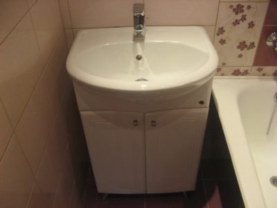 Наша компания выполнила ремонт ванной комнаты на улице Полярная в нежно-розовом и приглушенно бордовом цветах. В ходе работ мы демонтировали старую отделку и сантехнику, заменили дверной проем, установили новую дверь, а также смонтировали ванну и умывальник с тумбой. На пол уложили керамическую плитку темно-красного цвета, а стену украсили кафелем с цветочным принтом. Потолок оформлен белыми пластиковыми панелями. Общая стоимость ремонта составила 66 тысяч рублей. Цена черновых материалов — 23 тыс. руб.