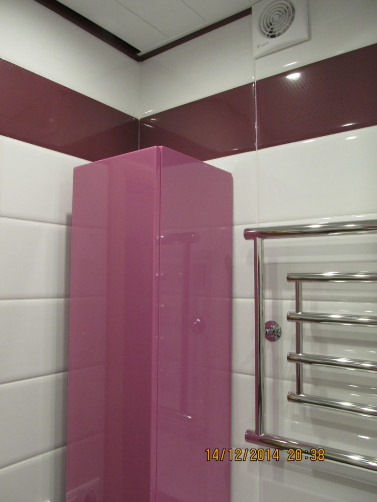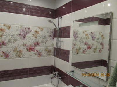 Для воплощения дизайнерской идеи при ремонте ванной комнаты на улице Чертановская была закуплена керамическая плитка с глянцевой поверхностью двух контрастных цветов. Смелое сочетание белого и бордо позволило создать в помещении камерную обстановку, а декоративное панно из кафеля с цветочным принтом придало композиции дополнительного шарма. Мы установили реечный потолок и вмонтировали в подвесную конструкцию точечные светильники. Для создания целостного ансамбля по краям потолка смонтирована темно-коричневая лента, а для обработки швов использовалась двухкомпонентная затирка с блестками. Из сантехники установлены ванна, умывальник с тумбой и полотенцесушитель. Также мы подключили стиральную машину, смонтировали шкаф для хранения кухонных принадлежностей и закрепили на стене держатель для душа. Цена ремонте – 73500 тысяч рублей. Стоимость расходных материалов – 20 тыс. руб.